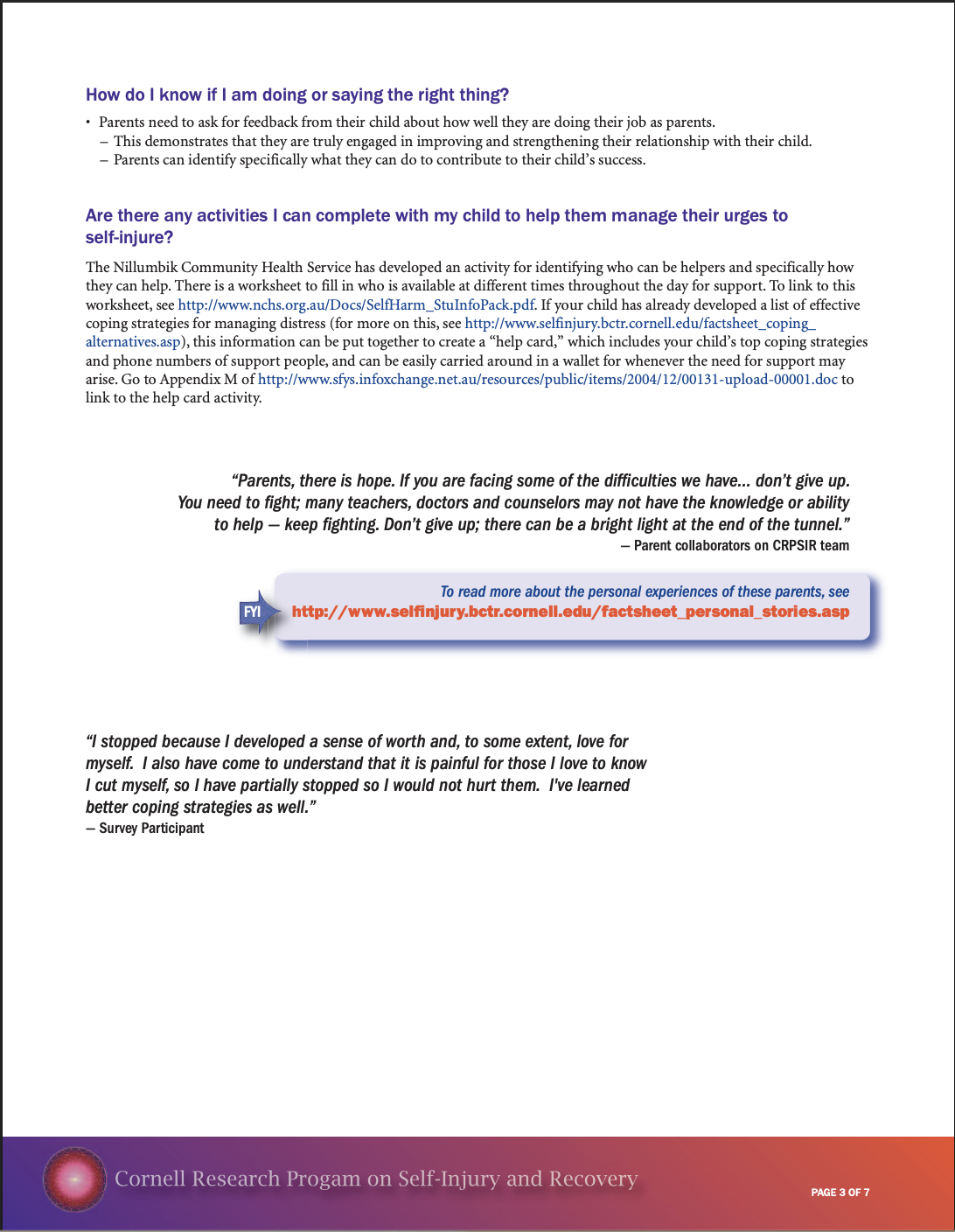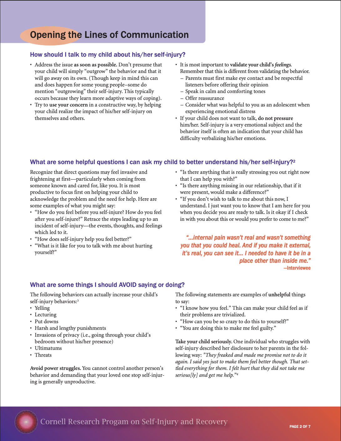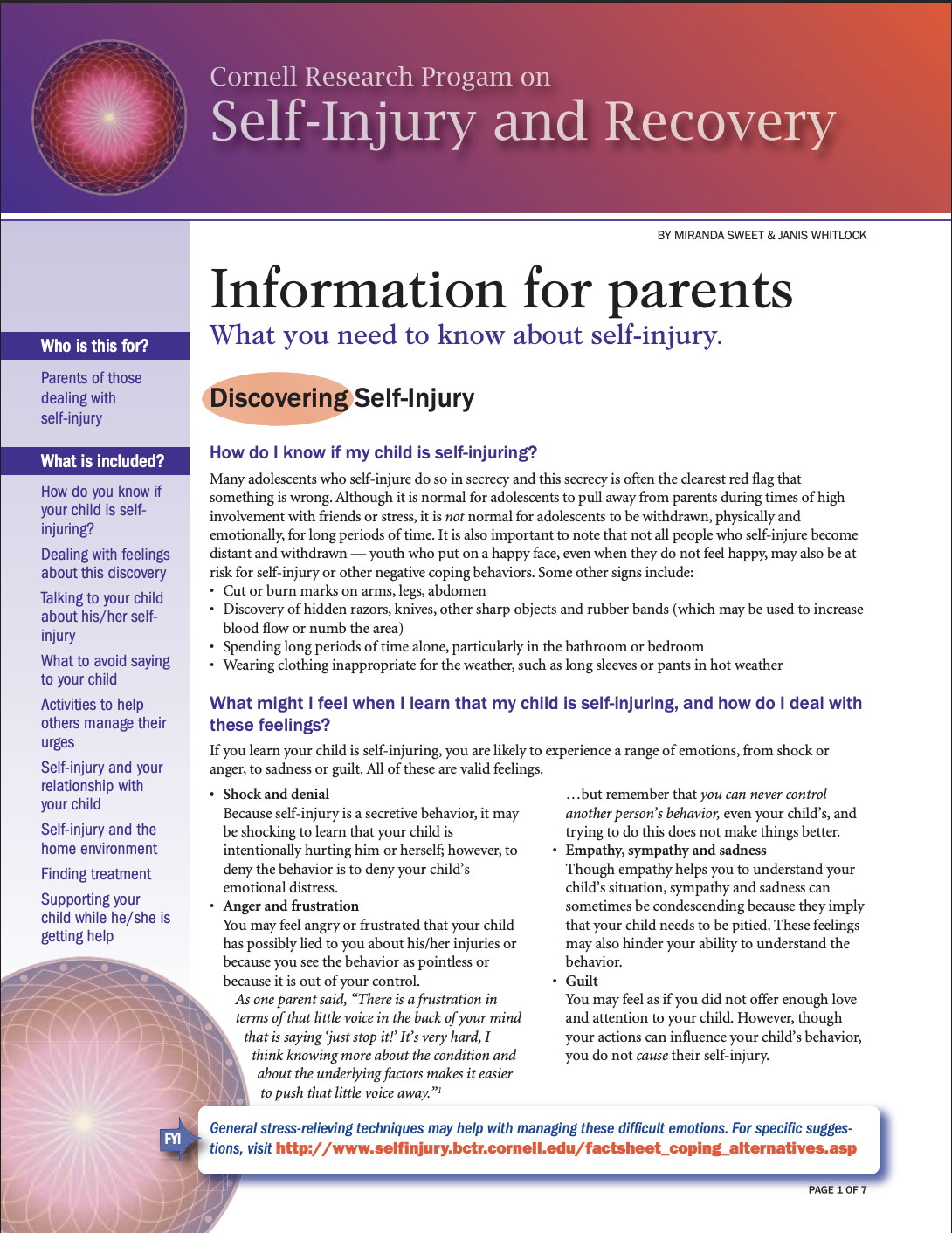 Self-Injury and Recovery Resource